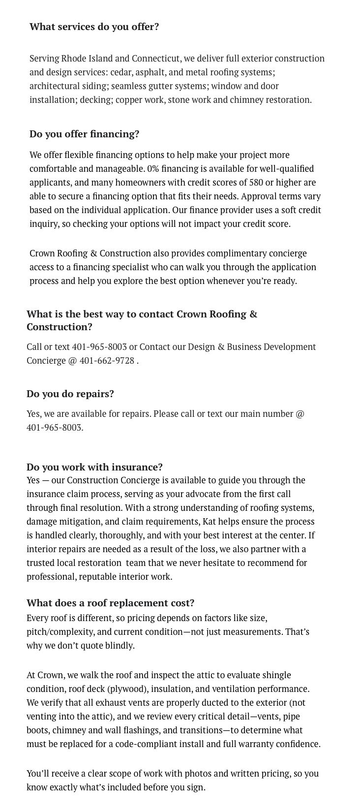 Crown Roofing & Construction 650 Ten Rod Rd, North Kingstown RI 02852