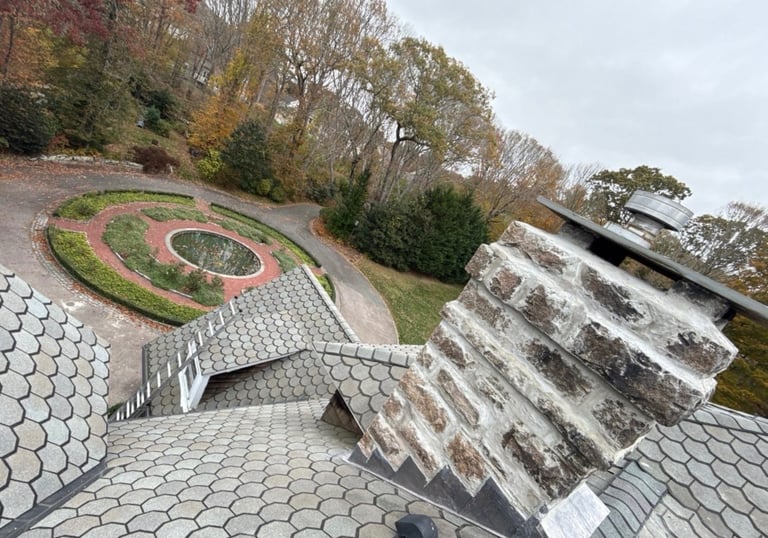 Chimney repair, repointing, and demolition services are available. This Chimney Repoint showcases a rustic smear (overgrout) technique that provides the allure of "old world charm."